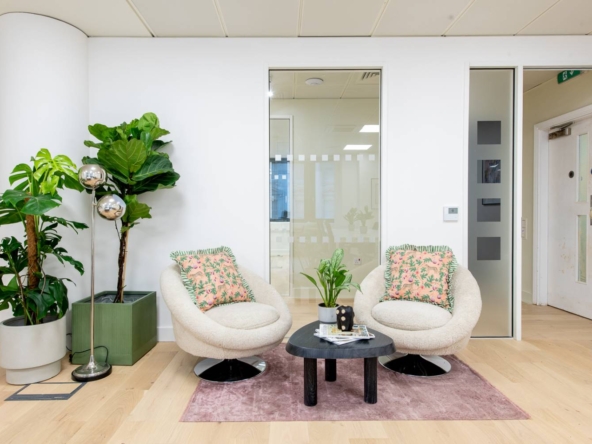 1 Fetter Lane sits just off Fleet Street, right in the heart of London’s legal and business district. The six-floor building has been completely redesigned with a “home-ification” approach, blending comfort with a modern workplace feel.