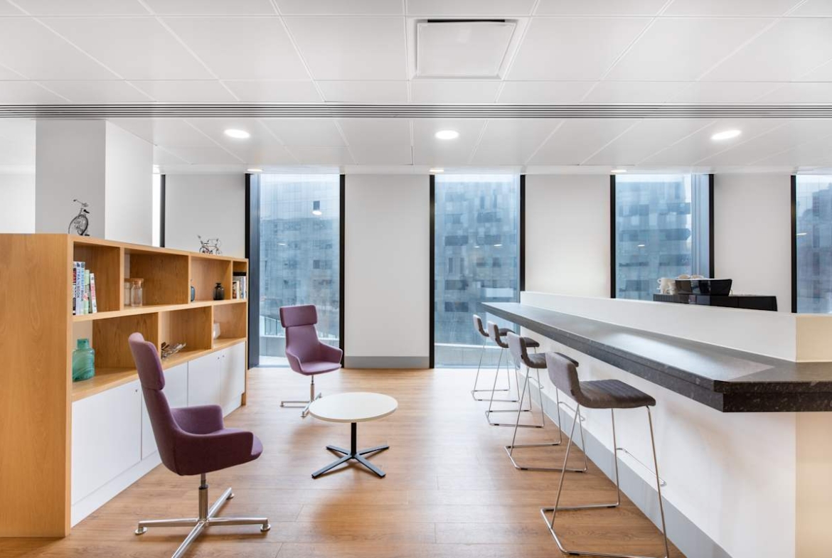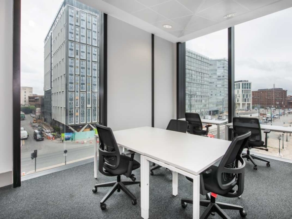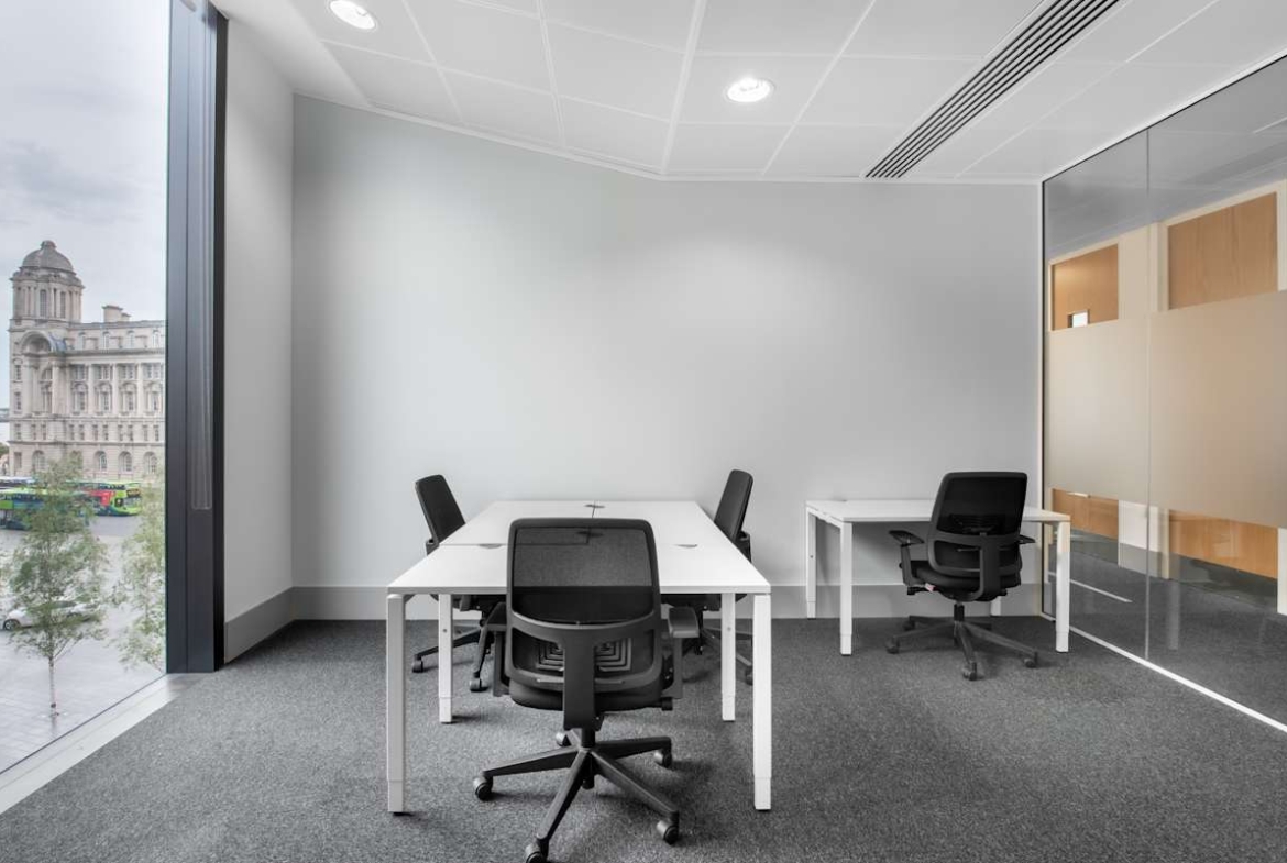 Inside, you’ll find fully furnished offices, coworking areas, and meeting rooms with high-speed internet and modern presentation equipment. Large windows fill the space with natural light and offer panoramic views of the River Mersey and Liverpool’s skyline. Breakout areas and shared lounges encourage collaboration and informal discussions, while on-site cafés and seating areas provide everyday convenience.