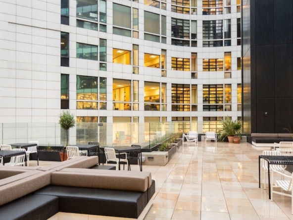 Inside, you’ll find meeting rooms equipped with A/V capabilities, high-speed Wi-Fi, and phone booths for private calls. The building boasts a wellness room, on-site barista, and outdoor terraces on the 2nd and 7th floors, providing stunning city views. Additional amenities include showers, bike storage, and event spaces, ensuring a comfortable and productive workday.