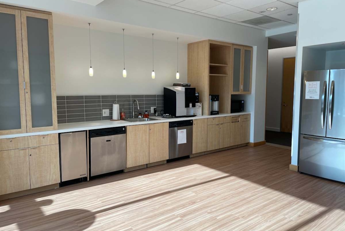 Inside, private offices, coworking areas, and furnished meeting rooms are supported by high‑speed Wi‑Fi and on‑site staff. Breakout areas, phone booths, and business‑class printers support everyday tasks, while stocked kitchens and an on‑site cafe keep teams covered. In addition, showers and bike storage encourage active, lower‑carbon commutes, and a wellness room offers space to reset. Event space, networking events, recreational games, and a snack bar round out the day when work slows.