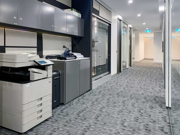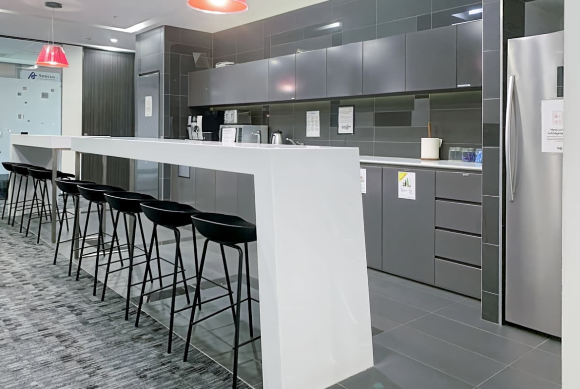 Inside, private offices, coworking areas, and meeting rooms are fully furnished and ready to use. High-speed Wi‑Fi, on-site staff, admin support, and mail handling keep work flowing smoothly. A lounge area offers relaxed space with views across Sydney’s sandstone landmarks for informal breaks. In addition, a mobile app and online portal streamline bookings and requests, reducing paper-based admin. As a result, all-inclusive services and digital tools support lighter, lower-waste operations.