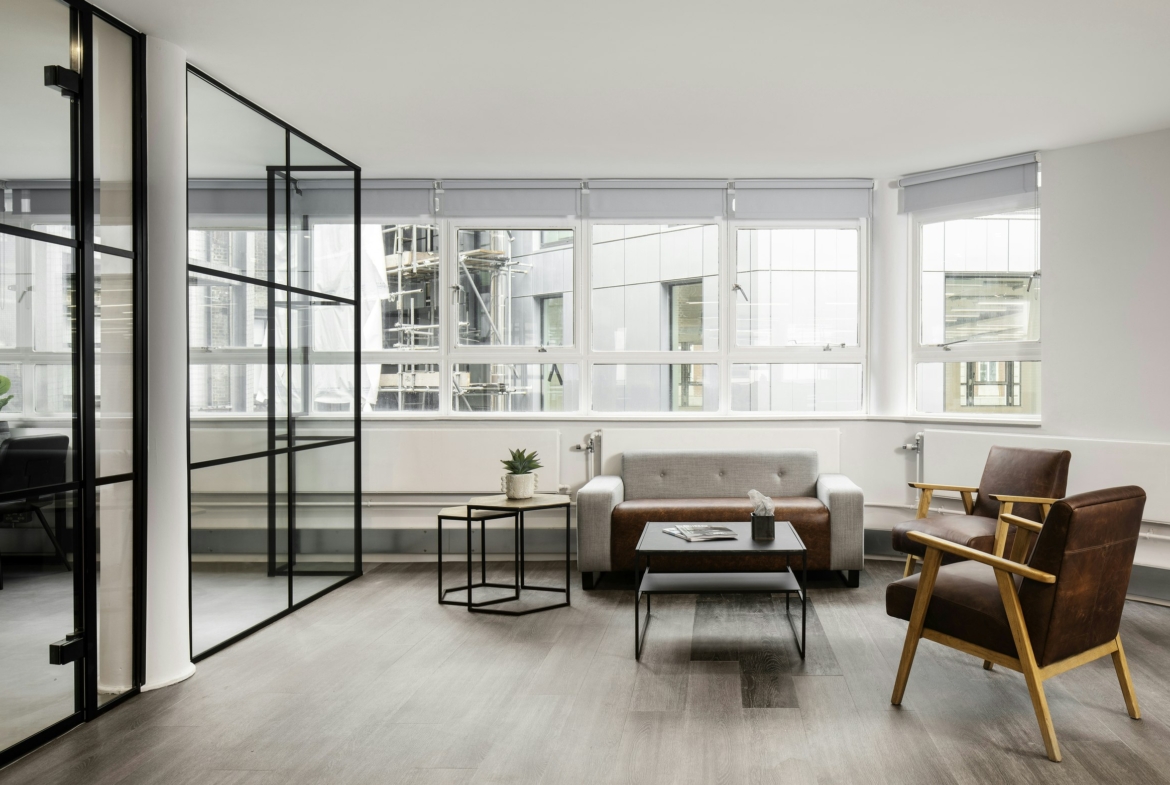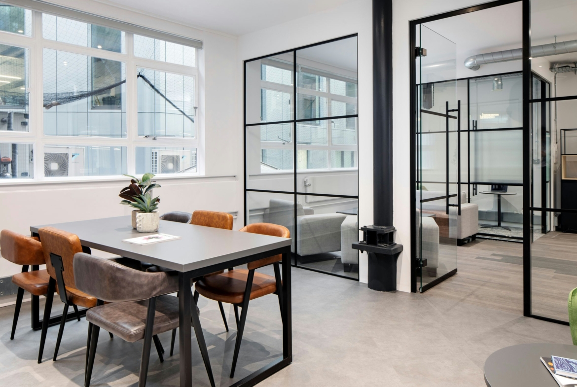 The office includes an open-plan area filled with natural light, thanks to large front-facing windows. Inside, you’ll find an 8-person meeting room, a private phone booth, and relaxed breakout space for informal chats. A communal kitchen adds to the sociable feel, while high-speed fibre broadband and air conditioning ensure comfort and performance. Cleaning is included, and the building offers 24/7 access.