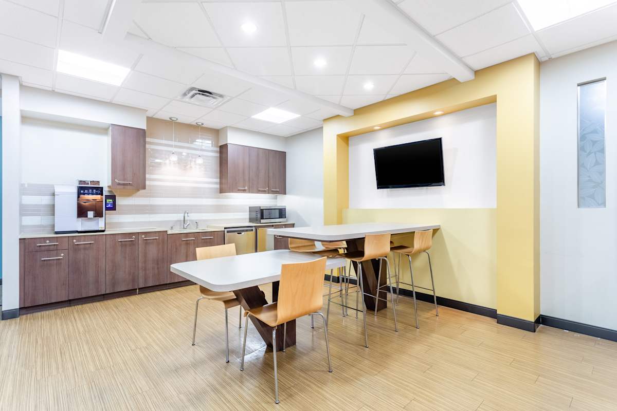 Inside, private offices, coworking zones, and bookable meeting rooms come with high‑speed Wi‑Fi and on‑site staff. Stocked kitchens, breakout areas, and phone booths cover everyday needs. In addition, business‑class printers, an event space, and networking events support collaboration without leaving the building. Bike storage and showers encourage active commutes. Meanwhile, a wellness room, recreational games, a snack bar, and an on‑site café add everyday comfort.