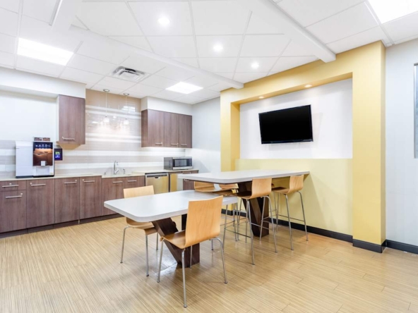 Inside, private offices, coworking zones, and bookable meeting rooms come with high‑speed Wi‑Fi and on‑site staff. Stocked kitchens, breakout areas, and phone booths cover everyday needs. In addition, business‑class printers, an event space, and networking events support collaboration without leaving the building. Bike storage and showers encourage active commutes. Meanwhile, a wellness room, recreational games, a snack bar, and an on‑site café add everyday comfort.