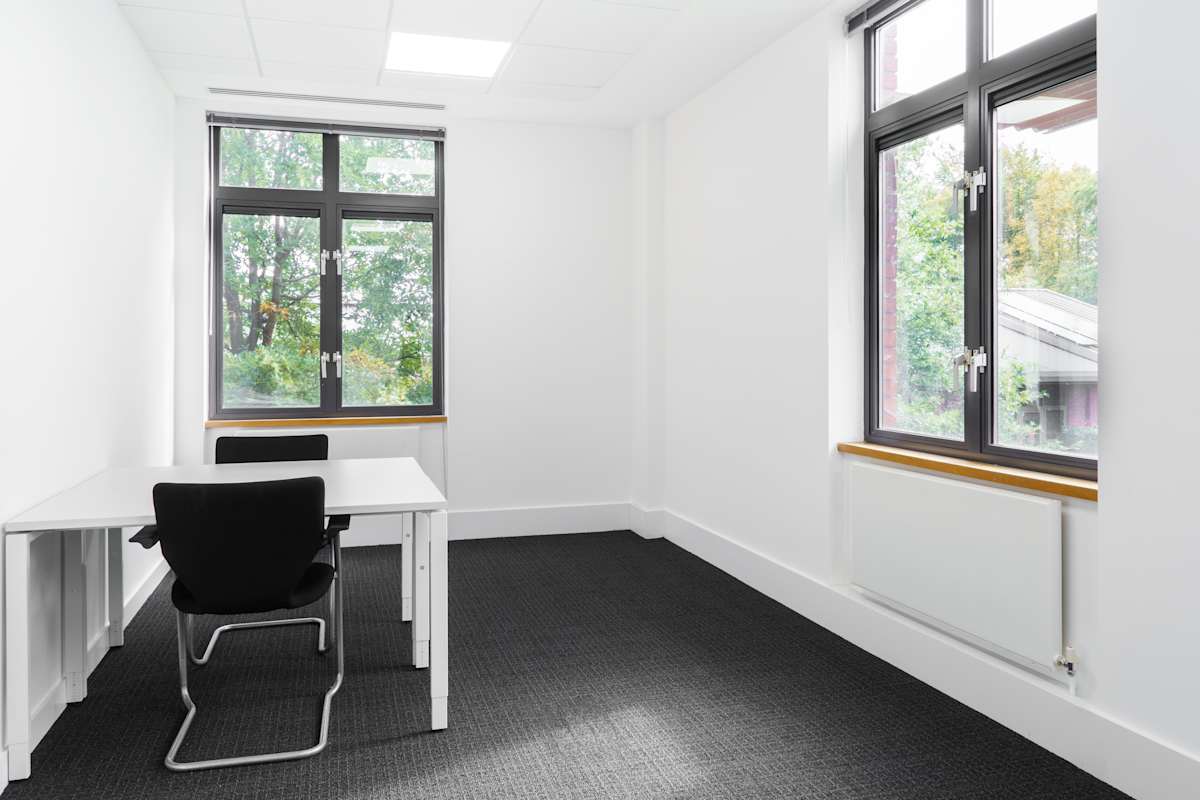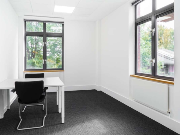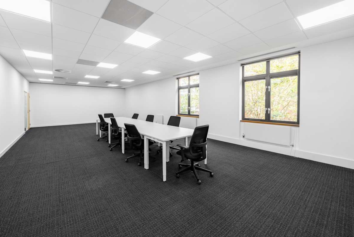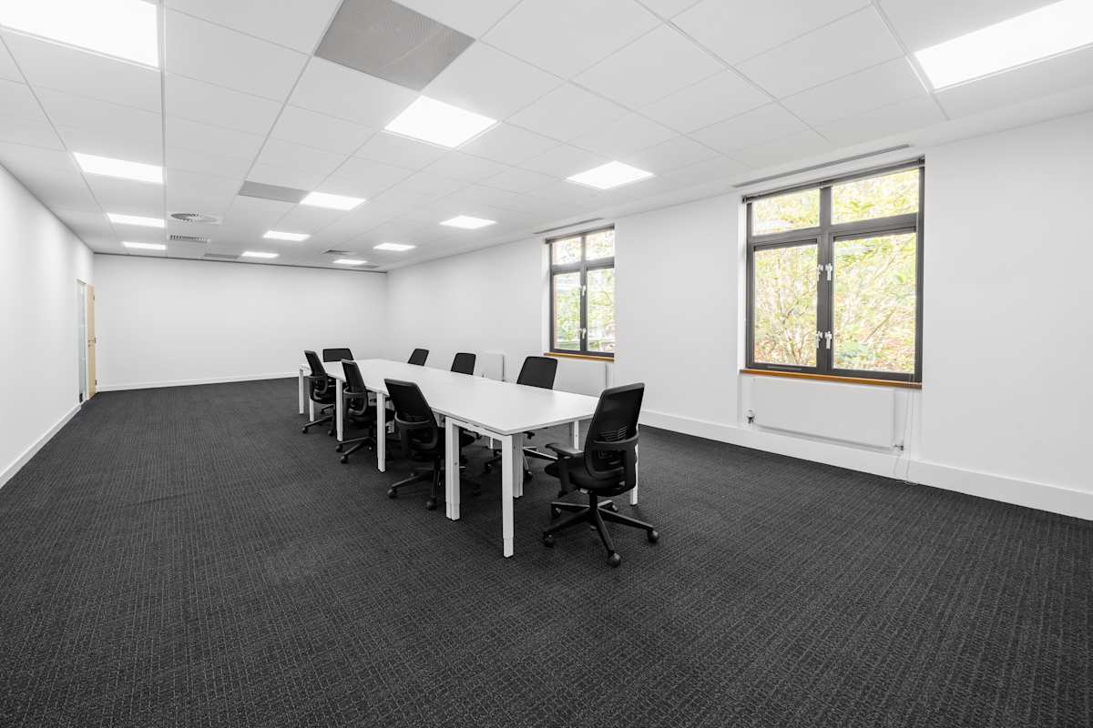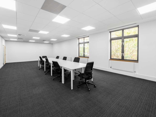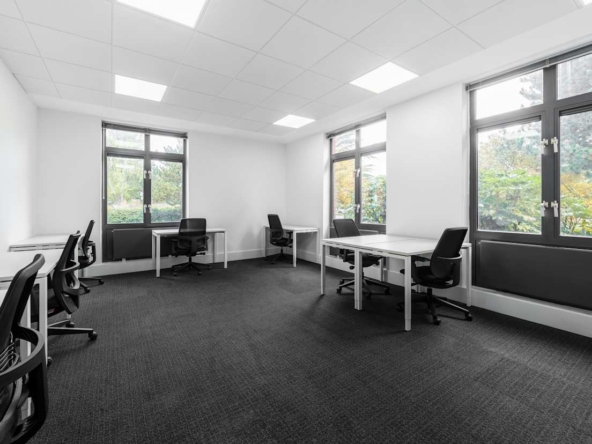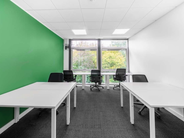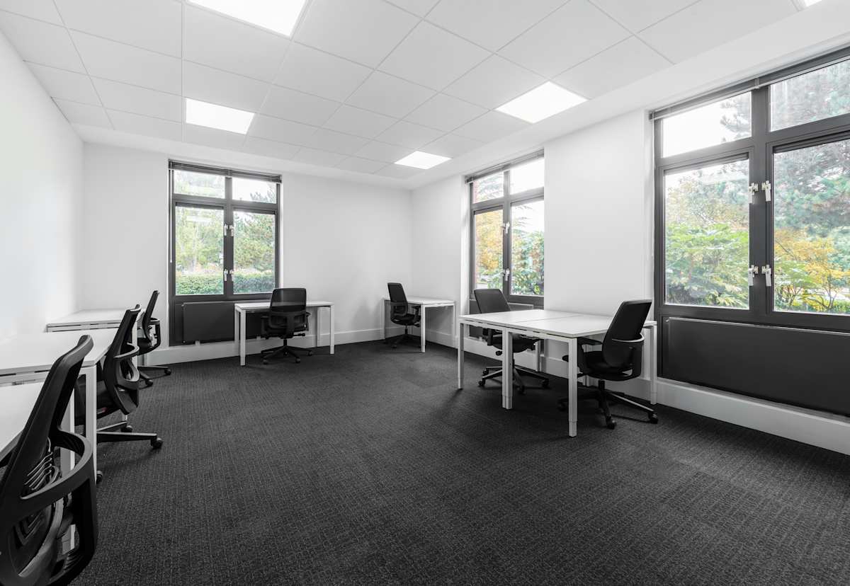 The building sits within 800 acres of landscaped parkland, offering a calm setting for work. Inside, there are private offices, coworking areas, and fully equipped meeting rooms, all supported by high-speed internet. On-site parking, secure entry, and comfortable breakout spaces with outdoor seating make it a practical and welcoming base for teams.