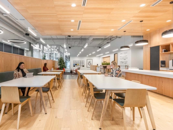 Inside, private offices, coworking areas, and bookable meeting rooms are ready to use with high-speed Wi‑Fi. In addition, on-site staff, phone booths, and business‑class printers support day-to-day work. Fully stocked kitchens, breakout areas, an on-site café, and a snack bar keep the pace steady between meetings. Meanwhile, bike storage and showers encourage low‑carbon commutes, while a wellness room and recreational games offer useful downtime. Event space and regular networking events help teams connect. Suites come furnished for a quick start.