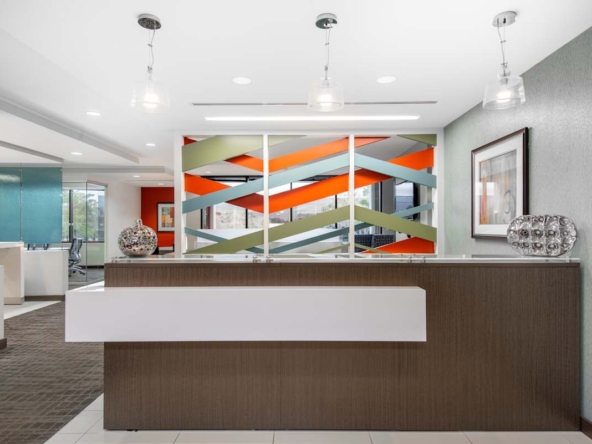 3505 Lake Lynda Drive sits just east of central Orlando, close to the UCF and Research Park. The setting suits teams that prefer calm surroundings with quick reach across the metro area. Tall windows bring in natural light, while colourful interiors create a clear, uncluttered working mood.