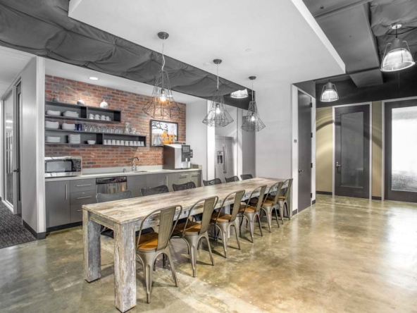 Private offices, coworking zones, and meeting rooms come furnished and ready to use. High-speed Wi‑Fi, business-class printers, and on-site staff keep daily operations moving. In addition, stocked kitchens, an on-site café, snack bar, and breakout areas support teams throughout the day. Also, phone booths, a wellness room, event space, and recreational games support focus and informal breaks. The workspace runs on 100% renewable energy, while bike storage and showers make active commutes practical.