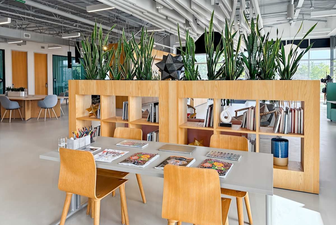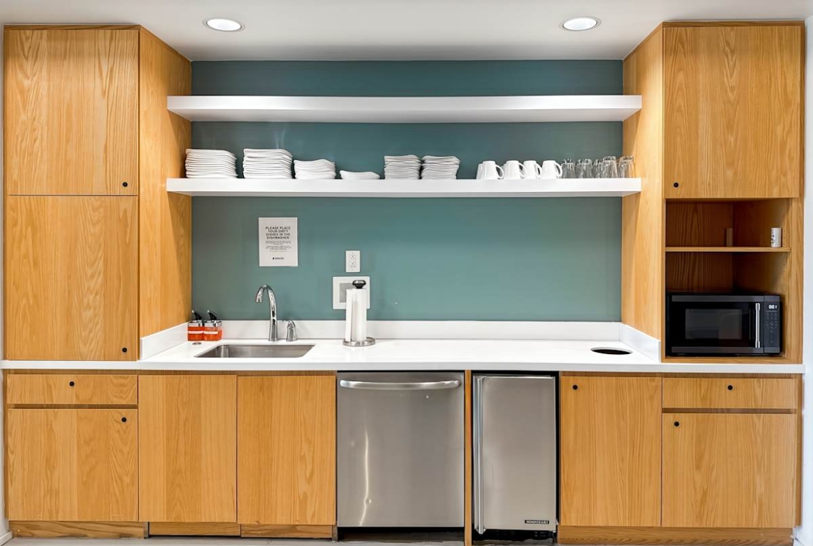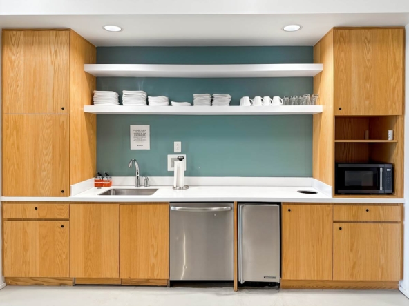 Private offices, coworking areas, and meeting rooms come fully furnished and ready to use. Plus, high-speed Wi‑Fi, phone booths, and business‑class printers support focused work, while on-site staff keep everything running. In addition, breakout areas, fully stocked kitchens, a snack bar, and an on-site café make it easy to refuel and meet informally. Showers and secure bike storage support active commutes. Meanwhile, a wellness room, event space, networking events, and recreational games add balance across the week.