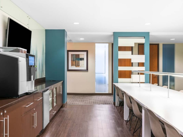 Inside, you’ll find private offices, coworking areas, serviced meeting rooms, and an event space with high‑speed Wi‑Fi and ergonomic furniture. In addition, on‑site staff, stocked kitchens, breakout areas, phone booths, and business‑class printers support focused work and quick catch‑ups. Showers, bike storage, and a wellness room encourage active commutes; the on‑site café and snack bar keep days running smoothly. The building uses 100% renewable energy, with solar panels and rainwater harvesting supporting a net‑zero carbon approach.