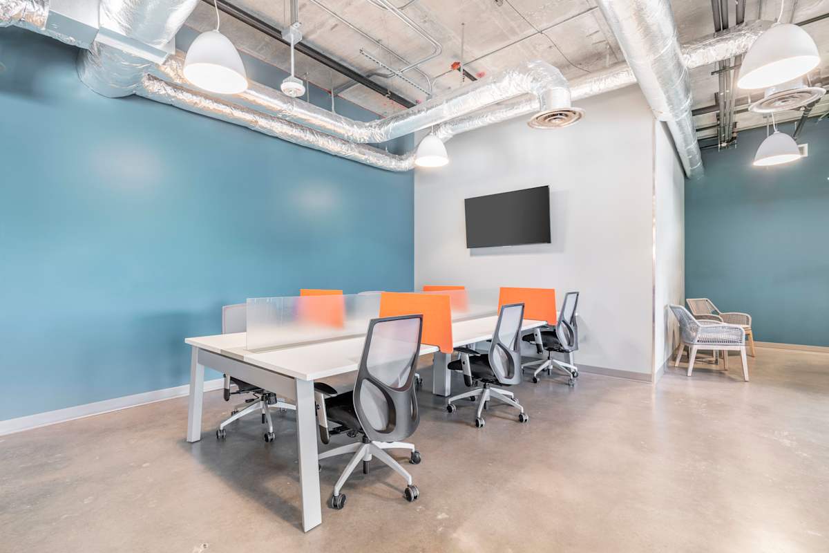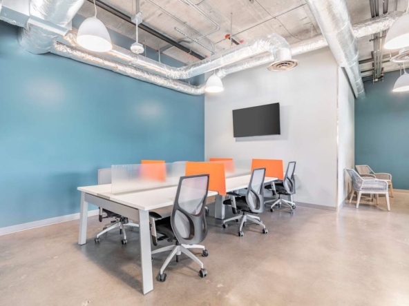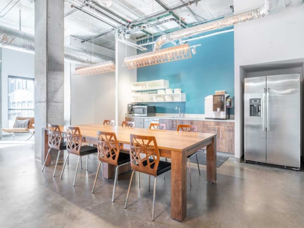 Inside, you’ll find furnished private offices, coworking areas, and equipped meeting rooms for immediate use. In addition, high-speed Wi‑Fi, business‑class printers, on-site staff, and phone booths keep work moving smoothly. Breakout areas, fully stocked kitchens, an on-site café, event space, and networking events build community, while showers and bike storage support low‑impact commutes. A wellness room, recreational games, and a snack bar add balance throughout the day.