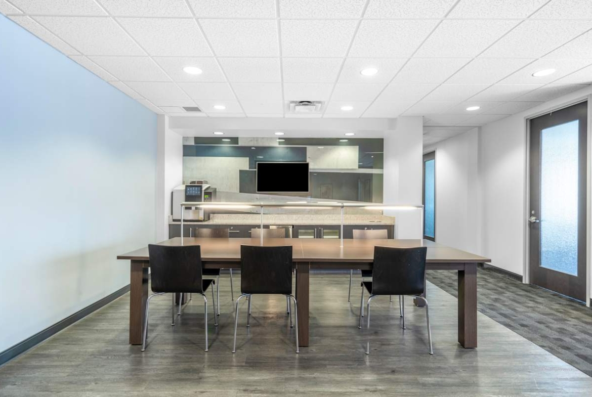 Workspaces include private offices, coworking areas, and bookable meeting rooms suited to hybrid collaboration, all furnished and ready to use. High‑speed Wi‑Fi, business‑class printers, phone booths, an on‑site café, and on‑site staff support focused work throughout the day. In addition, breakout areas, fully stocked kitchens, showers, a wellness room, and secure bike storage support active, lower‑impact commutes and everyday comfort. Plus, an event space, occasional networking sessions, a snack bar, and recreational games add variety to the day.
