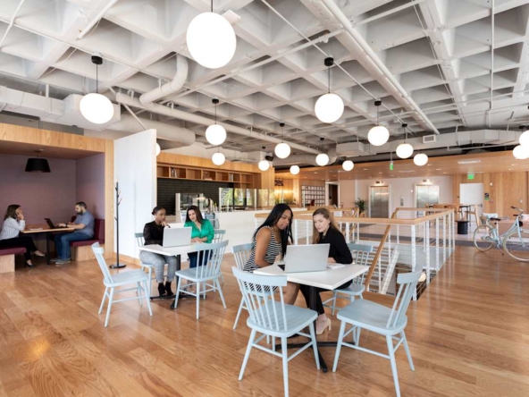 Inside, private offices, coworking zones, and serviced meeting rooms are ready from day one. In addition, high-speed Wi‑Fi, business‑class printers, and on‑site staff support focused work. Showers and secure bike storage back low‑carbon commutes, while fully stocked kitchens and breakout areas encourage pause. Phone booths, a wellness room, event space, and an on‑site café round out the offer. Also, networking events and recreational games add a lighter touch between meetings.