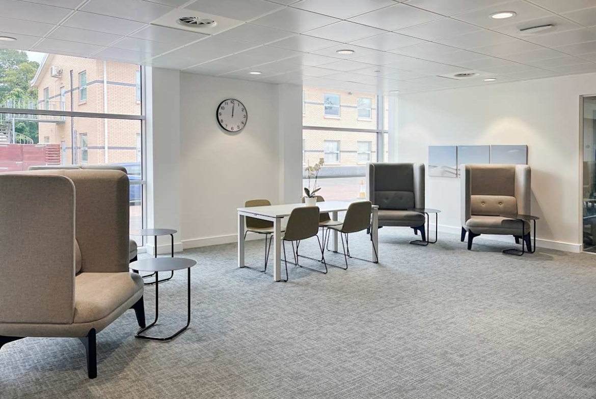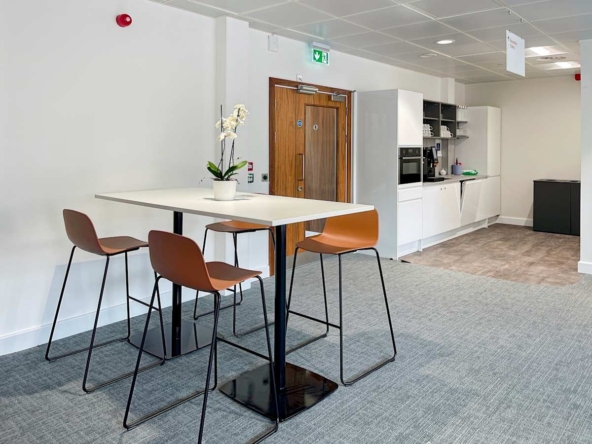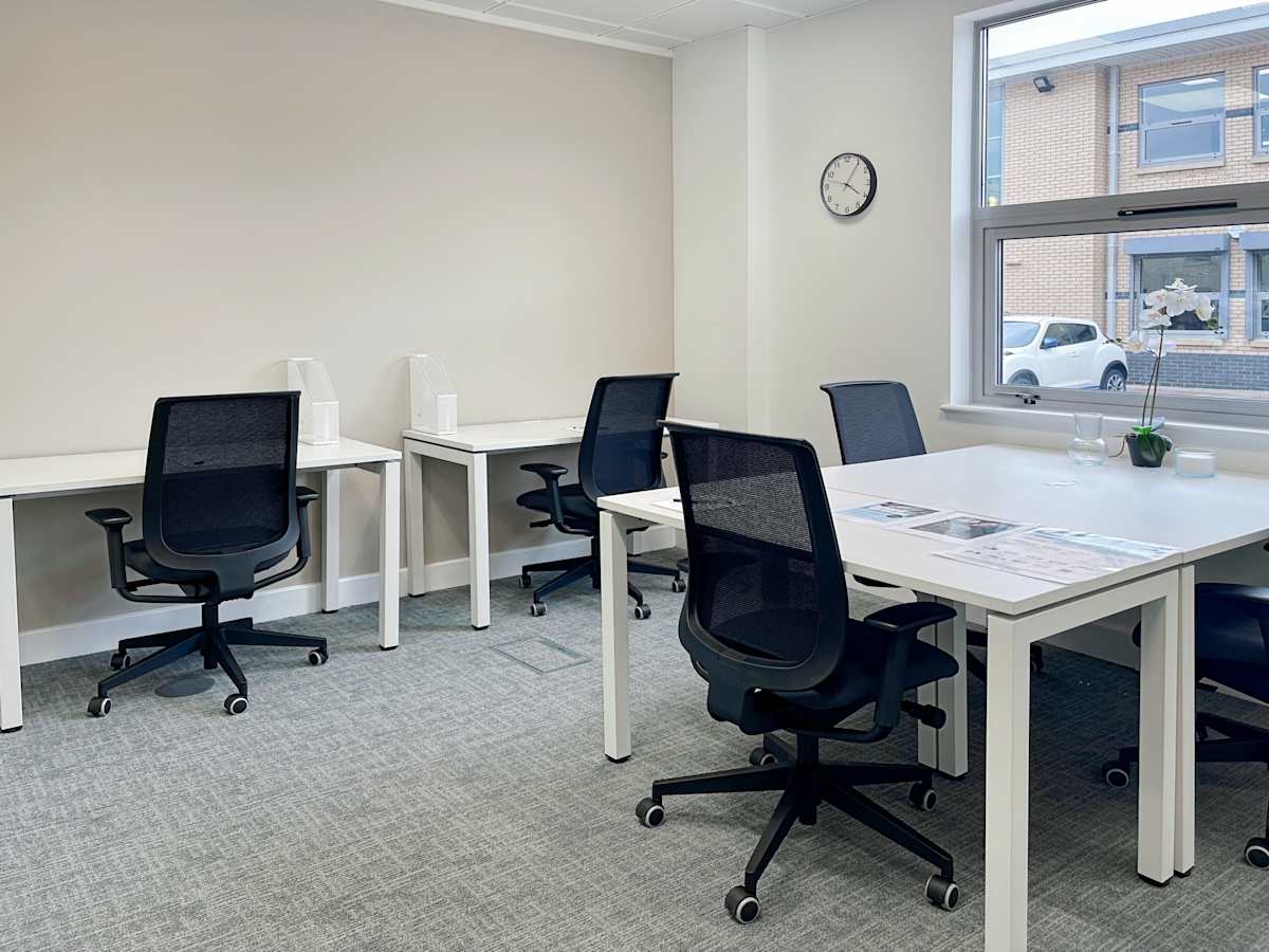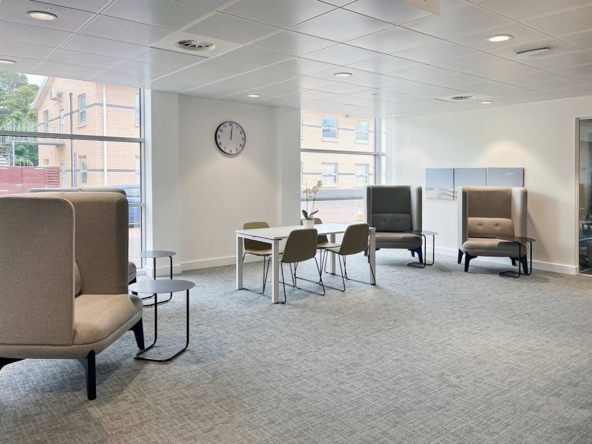 Inside, you’ll find private offices, coworking areas, and meeting rooms spread across two bright, well-designed floors. Superfast WiFi and ergonomic furniture support productivity, while the contemporary interiors create a comfortable place to focus. The reception team provides a warm welcome for visitors, and kitchen areas keep your team fuelled with fresh coffee throughout the day.