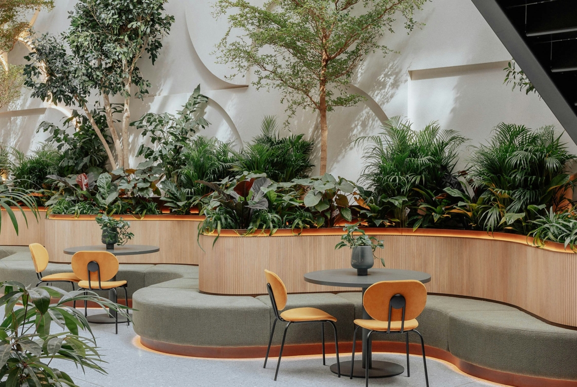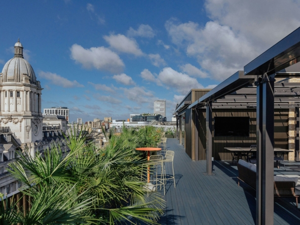 Inside, the building includes high-speed Wi-Fi, breakout areas, private phone booths, and a rooftop terrace with city views. You’ll find wellness facilities such as a fitness studio, showers with towel service, and complimentary yoga classes. Members can access multiple kitchenettes, an on-site café, and curated events ranging from drinks nights to sustainability workshops. A dedicated app makes it easy to book rooms and stay connected.