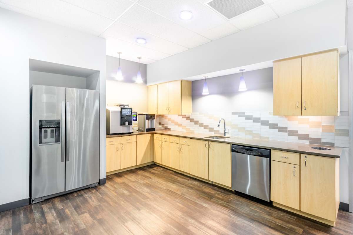 Inside, private offices, coworking areas, and meeting rooms are furnished, with high-speed Wi‑Fi, business‑class printers, and video conferencing tools. Breakout areas, phone booths, recreational games, and a wellness room help teams reset and focus. Moreover, showers and secure bike storage support active commutes and lower‑carbon travel. In addition, on-site staff, an on-site café, event space, networking events, and fully stocked kitchens round out daily needs.