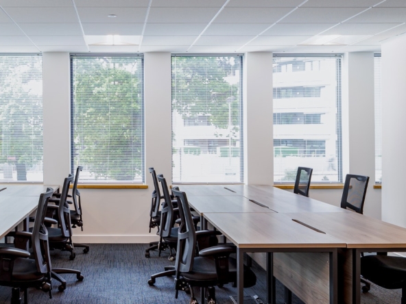 Abbey House in Farnborough offers a workspace that balances comfort and practicality. The building sits just a short walk from Farnborough’s mainline station, making commuting simple for teams and visitors. Inside, you’ll find a range of private offices and meeting rooms, all designed to support focused work and team catch-ups. Natural light fills the space, and the layout encourages a relaxed, productive atmosphere.