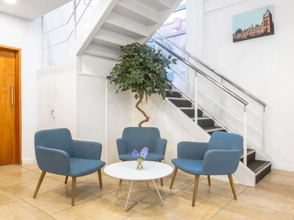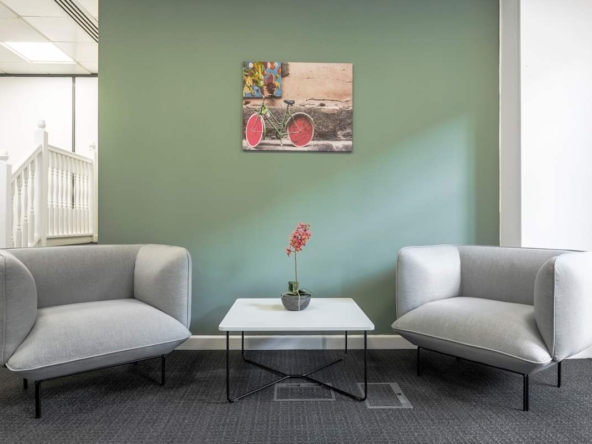 This modern office building features expansive glazing that fills workspaces with natural light, creating a bright and welcoming environment. Inside, you’ll find a range of flexible options, including private offices, open coworking spaces, and fully equipped meeting rooms. The contemporary reception area makes a great first impression for visiting clients, while breakout spaces and kitchen facilities provide spots for informal meetings or quick coffee breaks.