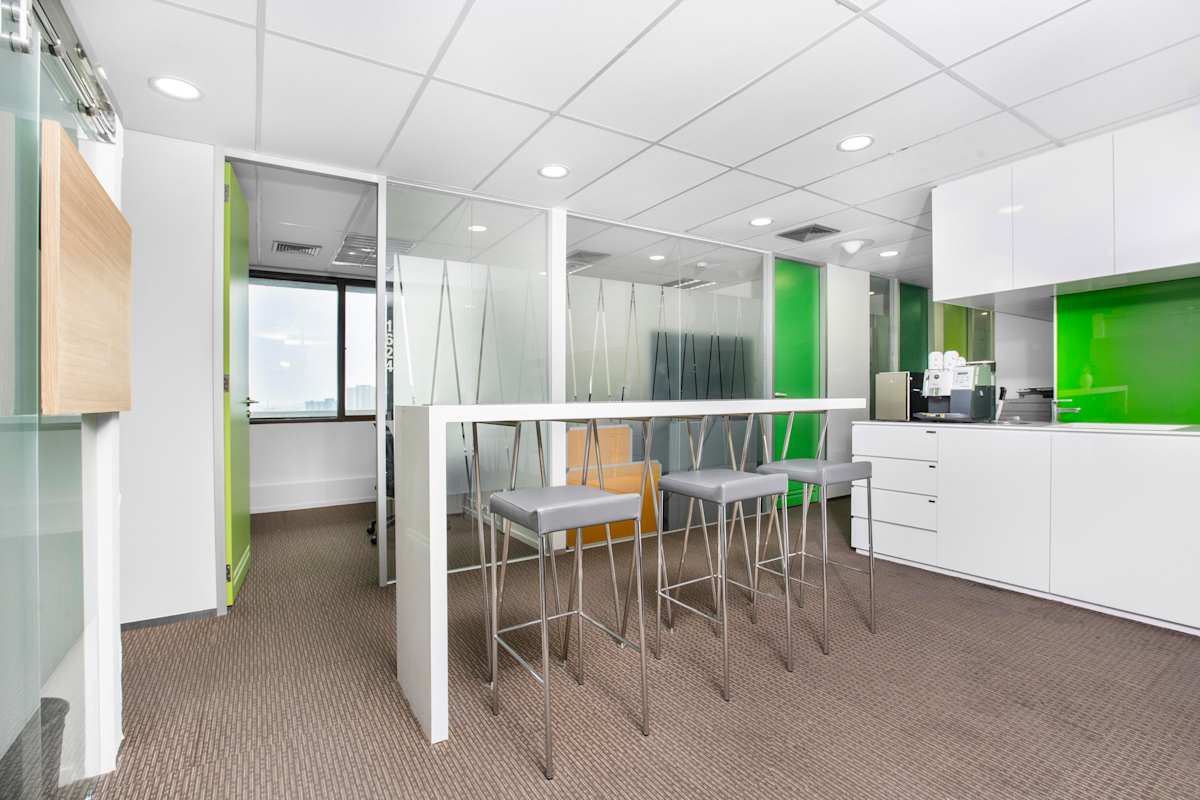 Inside, private offices, coworking areas, and furnished meeting rooms support varied ways of working. High-speed wi-fi, business-class printers, and on-site staff keep daily operations on track. Breakout areas, phone booths, and fully stocked kitchens sit alongside event space, an on-site cafe, and a snack bar. In addition, showers, bike storage, and a wellness room encourage healthy, low-impact commutes and routines.