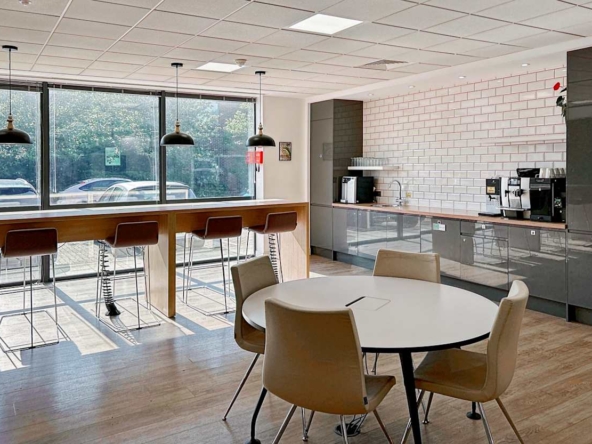This modern two-storey business centre is built to high specifications and filled with natural light. Choose from private offices, coworking areas, and meeting rooms, all equipped with high-speed internet and the latest business technology. An impressive reception area creates a strong first impression for clients. Breakout spaces and kitchen facilities provide informal areas for conversations or quick coffee breaks. The flexible layout suits everyone, from solo professionals to established teams.