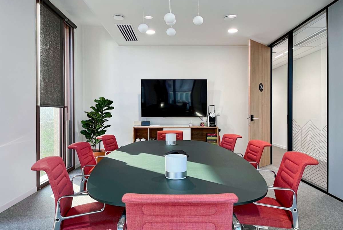Inside, the building offers open-plan coworking areas and private offices designed for flexibility. Natural light floods the workspaces, creating a bright and productive environment. Businesses can choose hot desks or book dedicated areas in advance. Fully equipped meeting rooms are available for pitches, presentations, or team workshops, with modern technology to support hybrid collaboration.