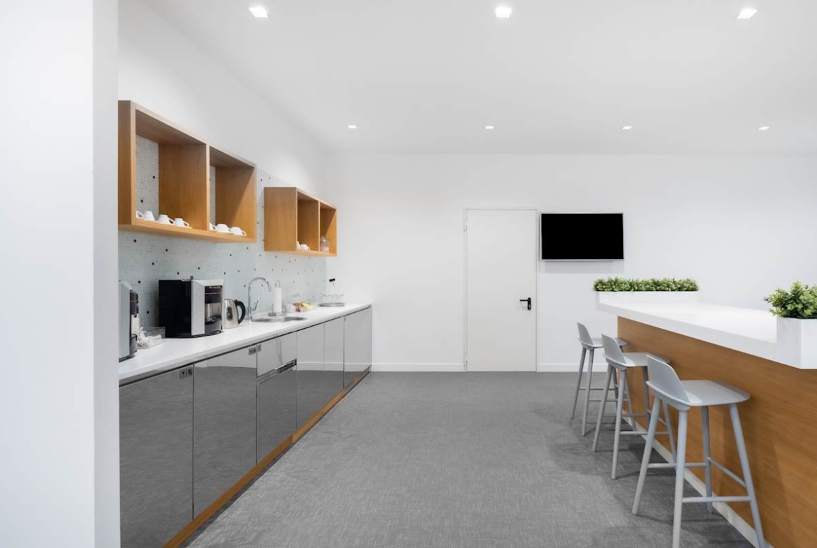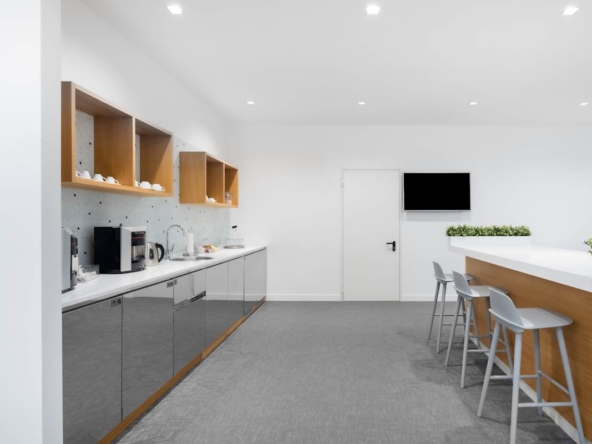 Inside, private offices, meeting rooms, and breakout areas are arranged for both collaboration and focused work. High-speed Wi-Fi and modern layouts keep projects running smoothly, while natural light creates a bright, comfortable environment. A staffed reception and on-site coffee bar support teams throughout the day.
