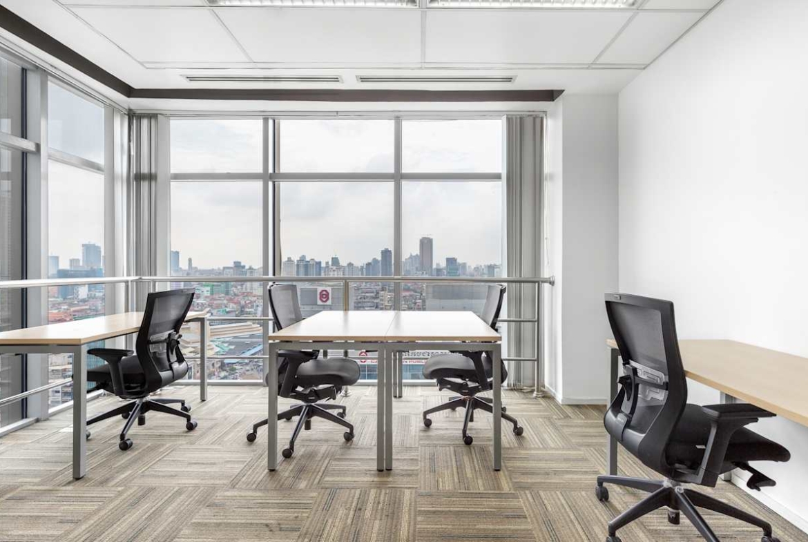 Canadia Tower sits in Phnom Penh’s central banking district, offering a landmark address with skyline views across the city and river. The tower places teams close to major banks, services, and key government offices that support daily operations. However, the atmosphere remains calm, with the riverfront and green spaces a short walk away.