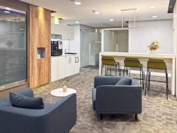 Inside, private offices, coworking areas, and bookable meeting rooms support different work styles throughout the week and project cycles. Natural light from full-length windows and warm wood finishes create a calm, contemporary backdrop for focused work. In addition, stocked kitchens, breakout spaces, high‑speed Wi‑Fi, and a handy mobile app and online portal keep days running smoothly.