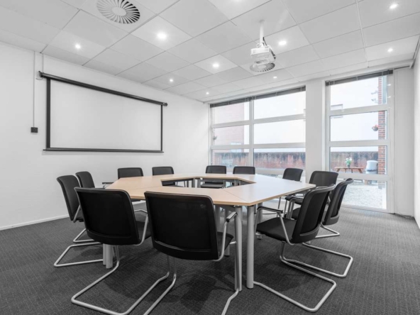 The workspace features panoramic windows with views of the North Downs, creating a bright and open environment. Inside, you’ll find a choice of private offices, collaborative coworking areas, and fully equipped meeting rooms. High-speed internet, ergonomic furnishings, and professional support services ensure a smooth working experience. Additional amenities include secure underground parking, outdoor seating for informal meetings, and 24/7 secure access.