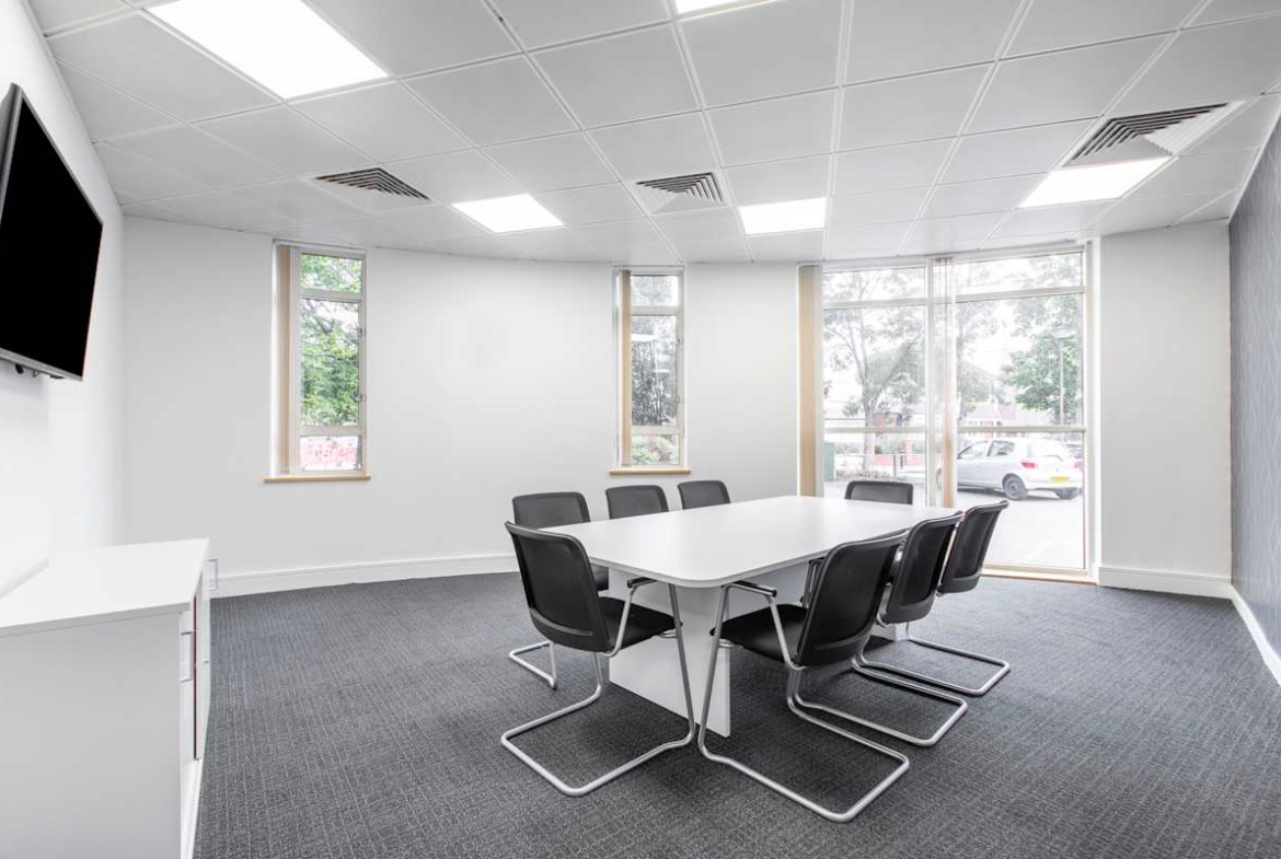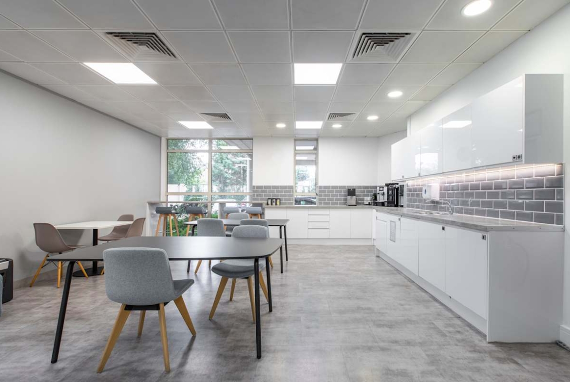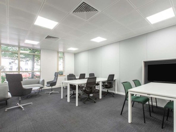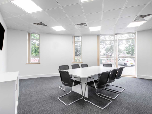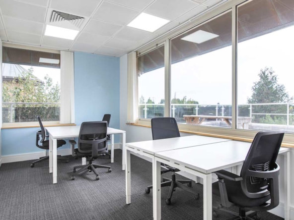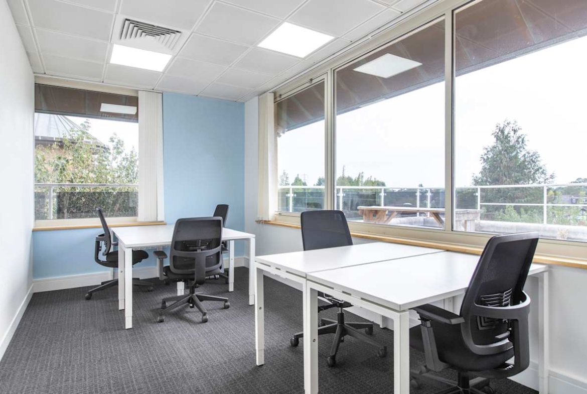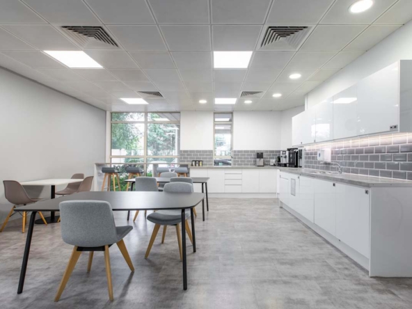The building’s distinctive round architecture makes it a standout feature in the town. Inside, you’ll find fully furnished private offices, open-plan coworking areas, and a dedicated videoconferencing suite, perfect for hosting client calls or team meetings. Modern breakout areas and communal kitchens provide informal spaces to recharge, while high-speed internet and secure 24/7 access keep your business running smoothly. The professional reception team ensures visitors receive a warm welcome and provides on-site support when needed.