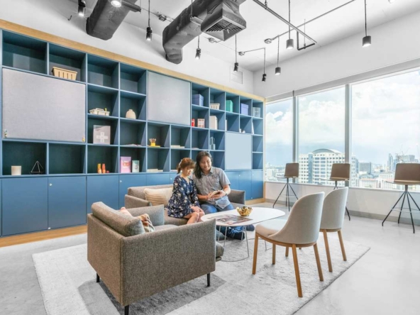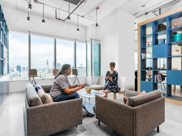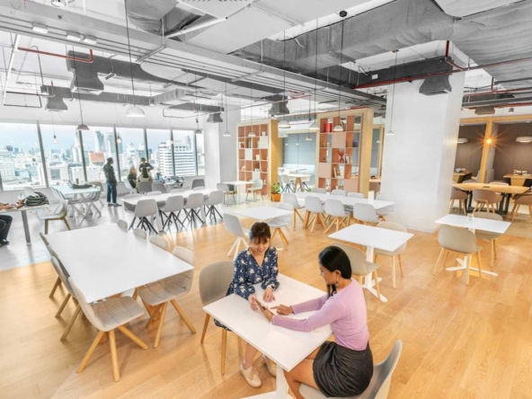 The workspace occupies the 24th floor of the Chamchuri Square tower, offering private offices, coworking areas, and meeting rooms designed for productivity. Large windows fill the space with natural light, while breakout zones provide comfortable areas for collaboration and networking. On-site amenities include secure parking from levels two to ten and direct access to the building’s integrated shopping mall for added convenience.