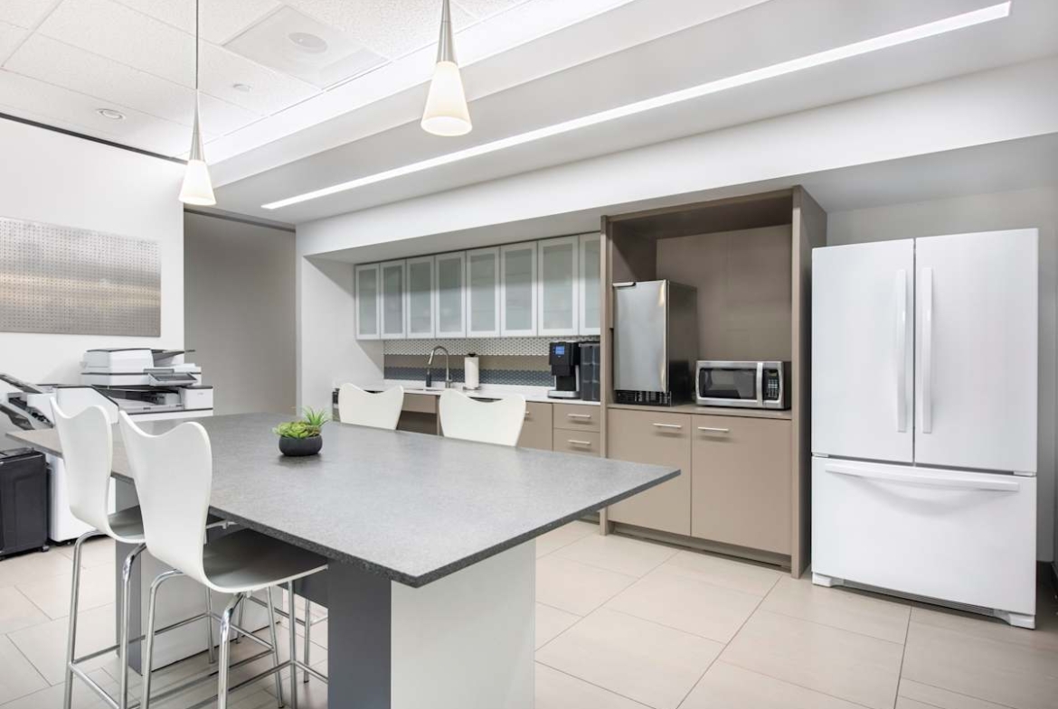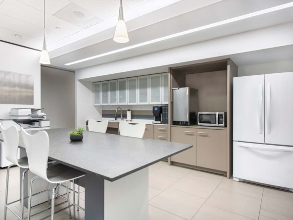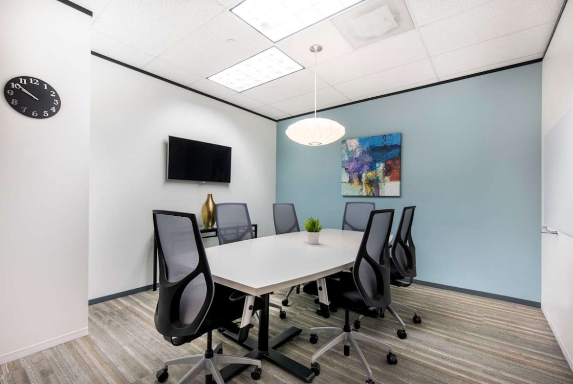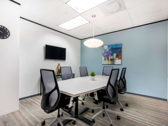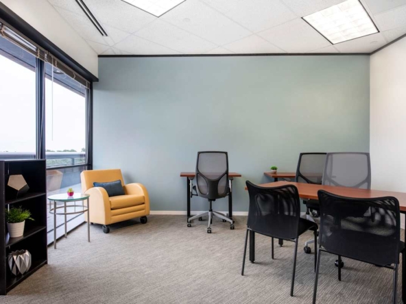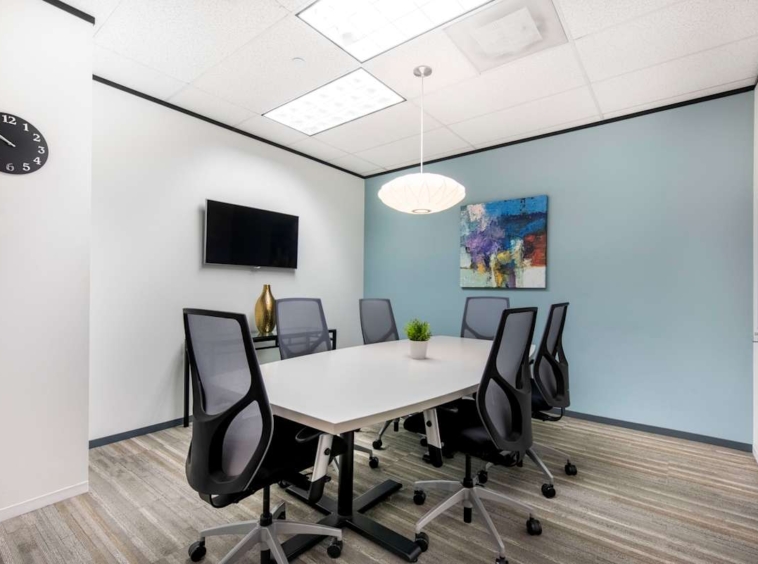 Inside, private offices sit alongside meeting rooms and breakout areas for focused and collaborative work. A business lounge supports informal catch-ups, and lifts connect all floors efficiently. In addition, an on-site gym, shared kitchens, and on-site security add day‑to‑day practicality. 24/7 key card access supports flexible schedules. Tenants also benefit from parking in a structured garage and surface lots, plus access to a community conference center.