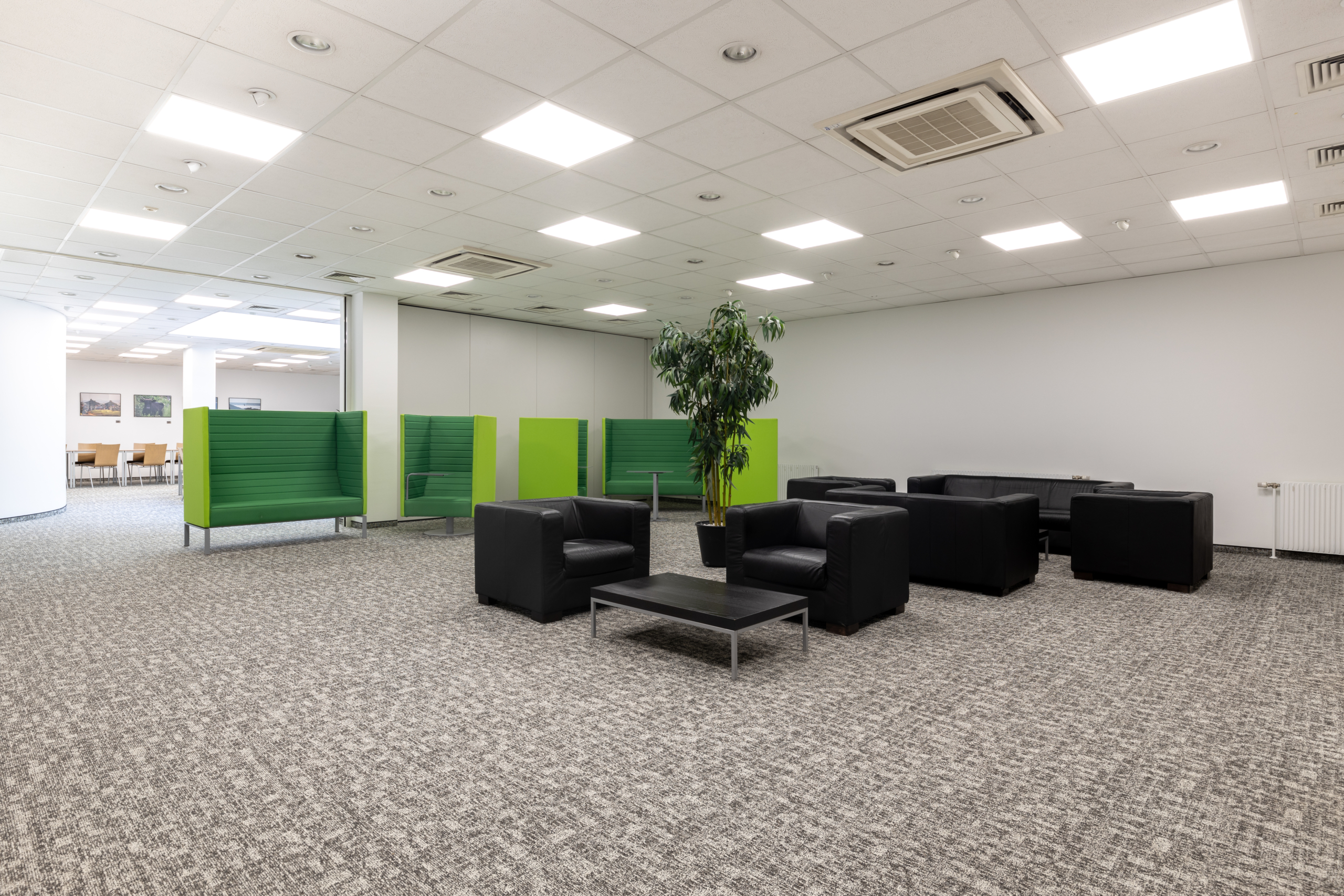 Inside, private offices, coworking zones, and bookable meeting rooms cover day-to-day needs. Floor-to-ceiling windows bring generous natural light, while raised flooring keeps cabling tidy and layouts adaptable. In addition, a business lounge, breakout areas, lifts, and bike storage support low‑carbon commutes, with on-site parking for drivers.