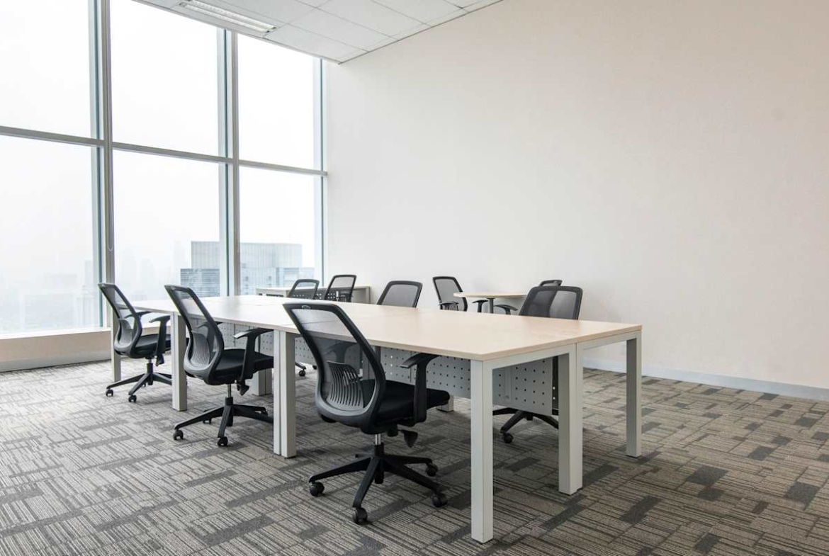 The property offers private offices, coworking areas, and meeting rooms located on the upper floors. Large windows bring in natural light and provide panoramic views of the Jakarta skyline. A comfortable lounge area gives teams a place to relax or meet informally. High-speed Wi-Fi and modern furnishings support day-to-day operations, while reception staff manage arrivals and services. Cleaning and maintenance are included.