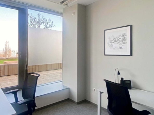 Inside, private offices, coworking areas, and serviced meeting rooms support a range of workstyles. In addition, breakout areas, a business lounge, and a terrace in landscaped grounds offer places to pause or meet informally. On-site teams, high-speed Wi‑Fi, wheelchair access, and optional parking support daily operations.