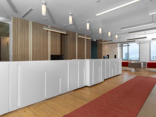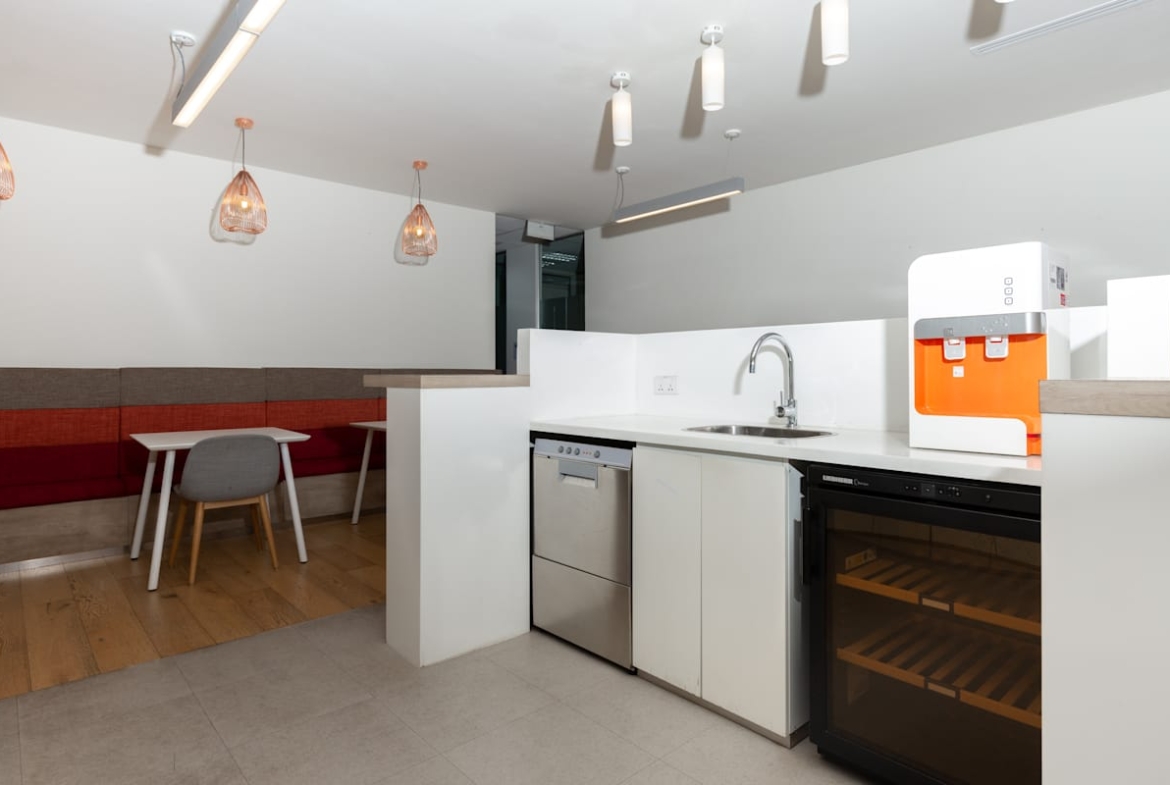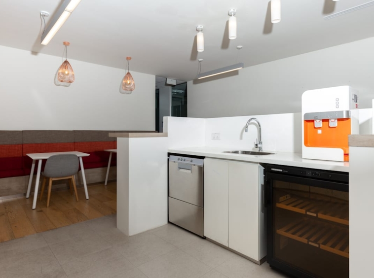 Inside, private offices, coworking areas, and bookable meeting rooms are ready to use. Light-filled 14th-floor workspaces, colourful breakout areas, and a terrace create comfortable spots to focus or pause. In addition, a coffee bar, lifts, and well-kept communal kitchens support day-to-day routines. On-site staff handle reception and cleaning so teams can stay focused on their work. High-speed Wi‑Fi and ergonomic seating come as standard.