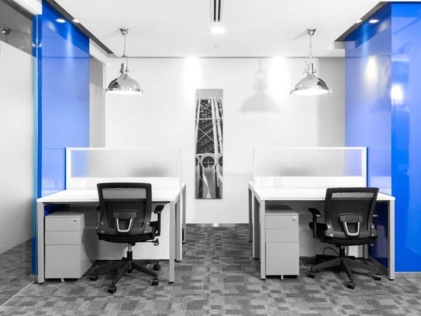 Inside, the building features striking blue and white interiors with a contemporary design that inspires creativity. Choose from a range of flexible workspace options, including private offices, open-plan coworking areas, and meeting rooms equipped with modern business technology. Dedicated thinkpods and breakout areas provide ideal spots for focused work or brainstorming sessions.