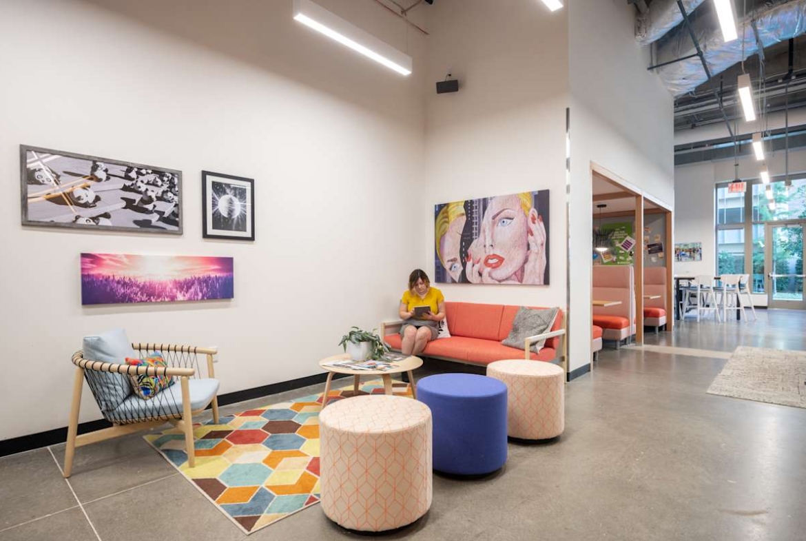 Inside, flexible private offices, coworking areas, and furnished meeting rooms come with high‑speed Wi‑Fi and on‑site staff. Phone booths, business‑class printers, and well‑equipped rooms make focused work and hybrid meetings simple. In addition, stocked kitchens, an on‑site café, a snack bar, and relaxed breakout areas keep days running smoothly. Showers and secure bike storage encourage low‑carbon commutes, while a wellness room and recreational games support downtime. Furthermore, event space and regular networking sessions help teams connect when needed.