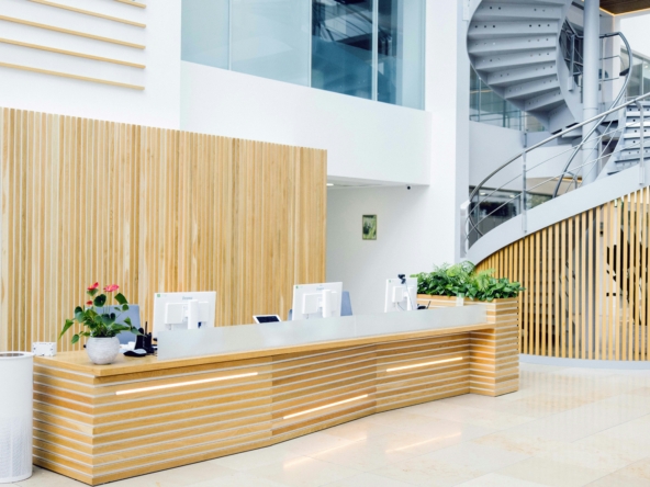 Natural light fills many of the work areas, creating a pleasant atmosphere throughout the day. The building’s layout encourages interaction while also allowing for quiet focus when needed. Meeting rooms come equipped with the latest technology, ideal for presentations or team discussions.
