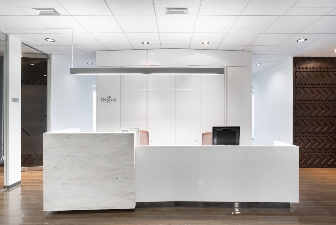 Workspaces sit on the ninth floor of a modern white high‑rise, with floor‑to‑ceiling windows and far‑reaching views. Inside, private offices, coworking areas, meeting rooms, and a calm business lounge run on fast Wi‑Fi with on‑site support. Additionally, breakout areas, an on‑site café, and CCTV monitoring round out the essentials for day‑to‑day work. As a result, the generous natural light helps reduce reliance on artificial lighting during the day.