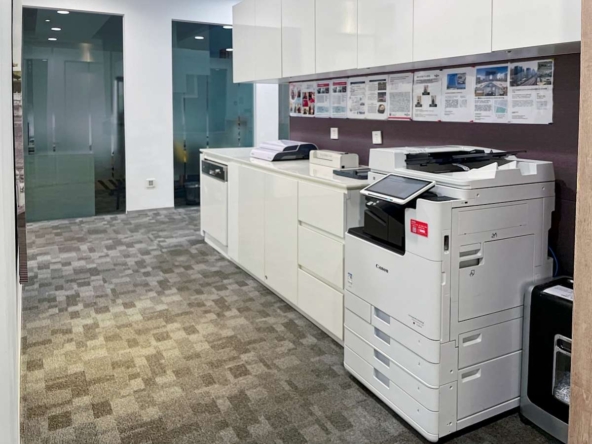 Inside, flexible private offices, coworking areas, and well-equipped meeting rooms support different workstyles comfortably. High‑speed Wi‑Fi, business‑class printers, phone booths, and on‑site staff keep operations smooth, while breakout areas, fully stocked kitchens, and an on‑site café make the day easier. In addition, bike storage and showers support low‑carbon commutes, while a wellness room, events, and games add balance.