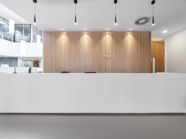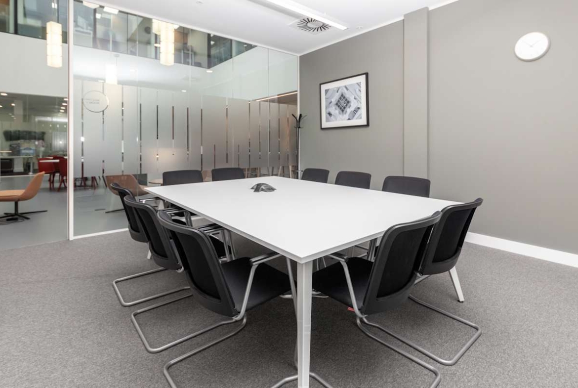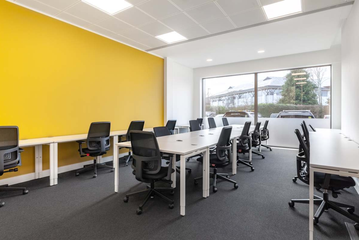 The modern building features a striking glass-fronted entrance and light-filled interiors. Inside, you’ll find private offices, open-plan coworking areas, and fully equipped meeting rooms designed to support teams of all sizes. High-speed internet, ergonomic furnishings, and on-site support services create a productive setting, while breakout spaces and kitchen facilities provide areas for informal meetings or a quick coffee break.
