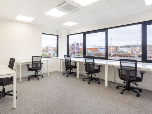 Transport links are excellent. Narborough Train Station is a short drive away, offering direct services to Leicester and Birmingham. For local amenities, Fosse Shopping Park is nearby, with well-known restaurants and cafés such as Nando’s and Costa Coffee, perfect for lunch breaks or informal client meetings.