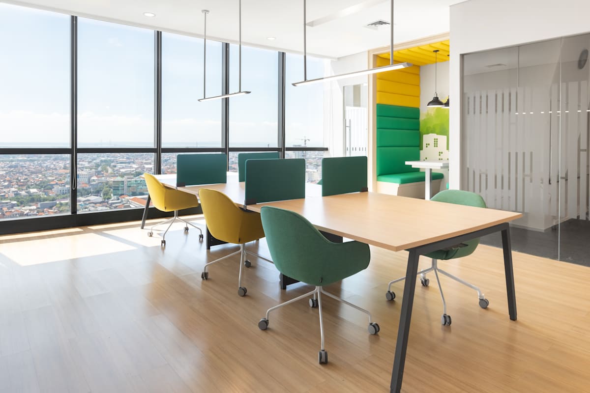 Step out to Tunjungan Plaza for shops, cafés, and everyday services, or sample street food on Taman Apsari Street. Nearby hotels and banks support client visits across the city. Furthermore, the building’s relaxed interiors, with colourful booths and warm timber finishes, suit focused work and team sessions alike. Pakuwon Centre offers a well-connected base for teams in Surabaya.
