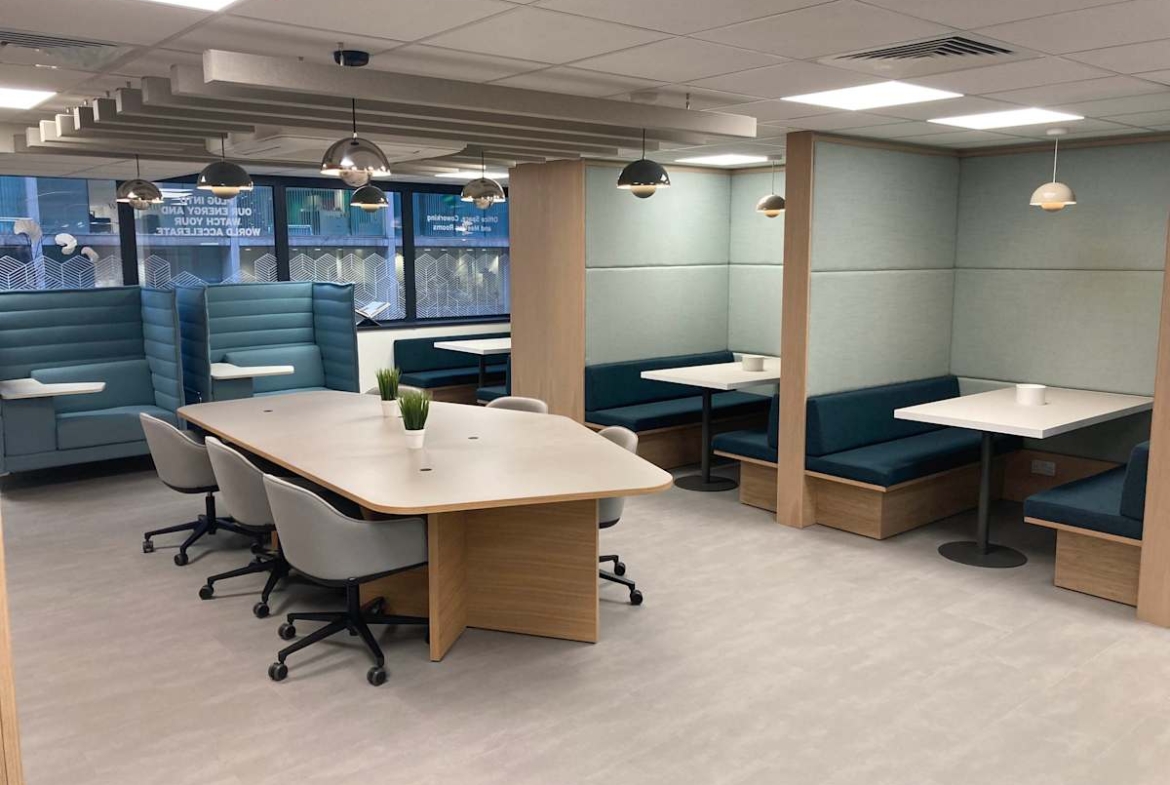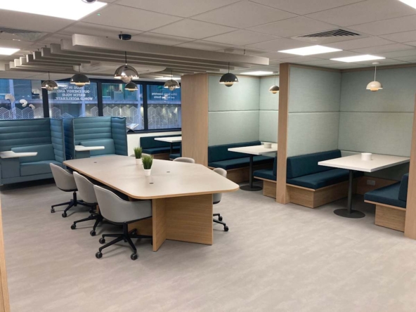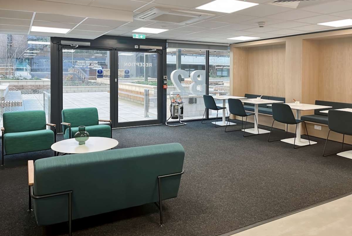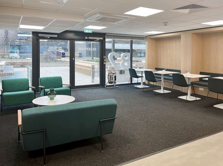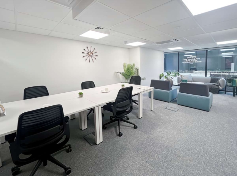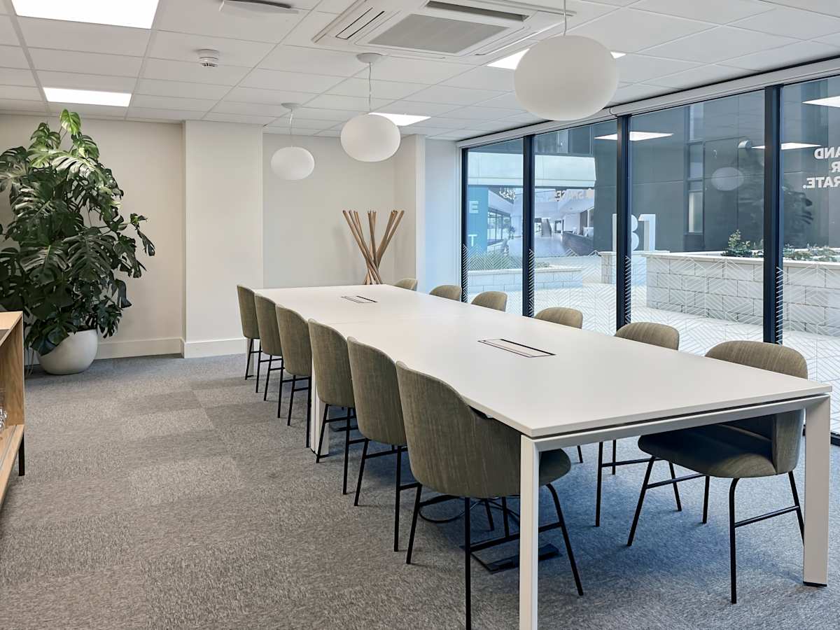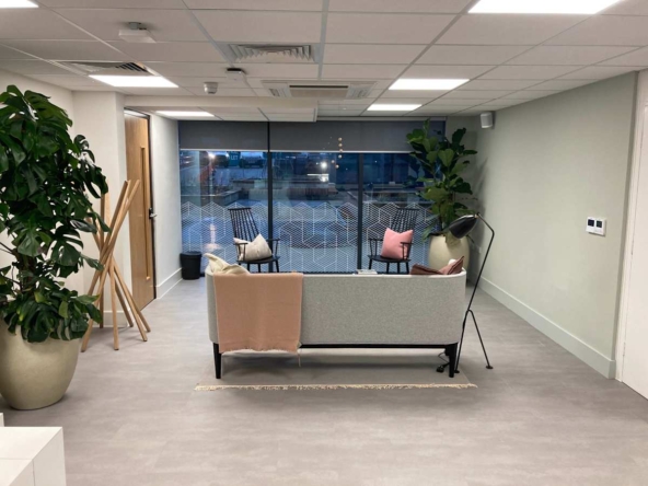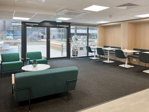 Inside, you’ll find private offices, collaborative coworking areas, and meeting rooms ready to use from day one. High-speed internet and ergonomic furnishings support productive work, while stylish communal spaces encourage collaboration and networking. Additionally, the building features an on-site wellbeing centre and a plaza bar, giving your team places to relax and recharge during the day.