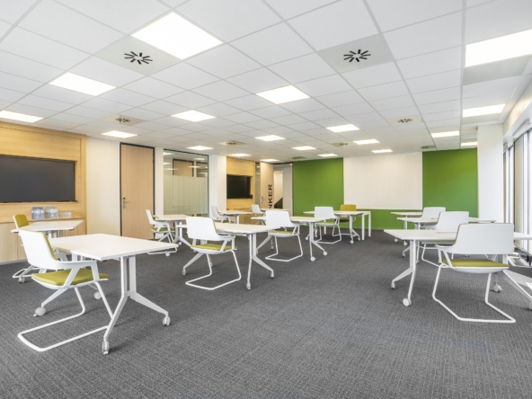 Inside, private offices, coworking areas, and bookable meeting rooms are ready from day one. Breakout areas, an on-site café, and a well-equipped gym support the working day. In addition, wheelchair access, lifts, suspended ceilings, and on-site parking add practical detail, with recycling points provided. Reliable Wi‑Fi and on-site support keep operations smooth throughout the day.