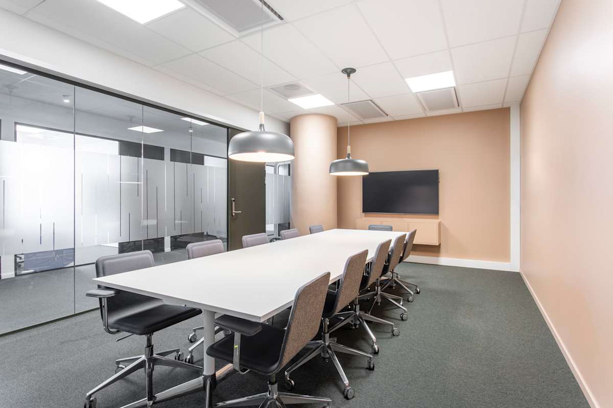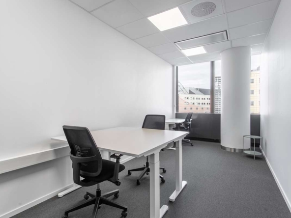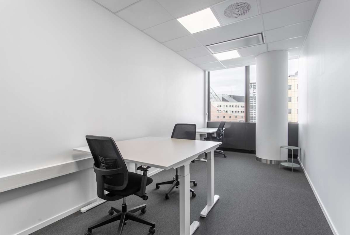 Inside, private offices, meeting rooms, and breakout areas are arranged for focus and collaboration. Floor-to-ceiling windows fill the space with natural light, while modern furnishings create a productive environment. Teams can also access a roof terrace with expansive views across Oslo. High-speed Wi-Fi runs throughout, and a staffed reception supports daily operations. On-site dining, including a sandwich bar, provides convenient options for lunch and informal meetings.