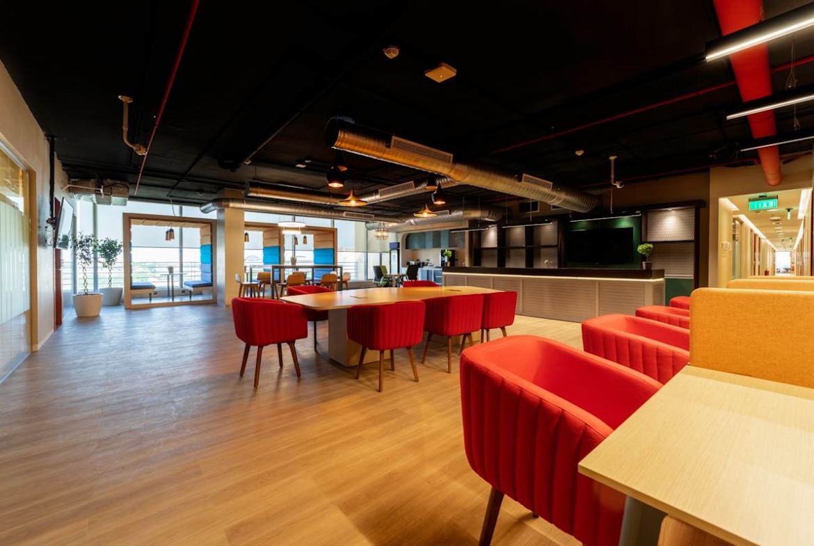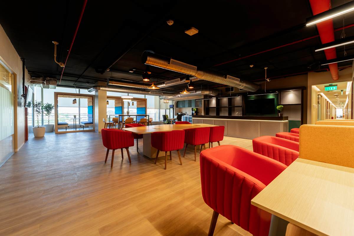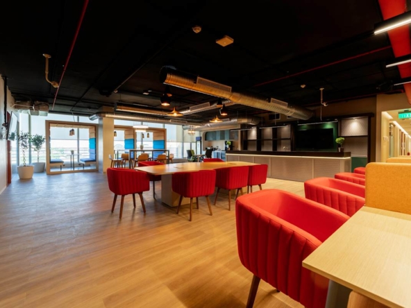 Inside, the building offers private offices, coworking areas, and fully equipped meeting rooms. Workspaces are ready to use, complete with high-speed internet and modern furnishings. Breakout areas and business lounges provide comfortable spots for informal meetings or quick catch-ups. Meeting rooms come with AV setups designed for client presentations, video calls, and team workshops.
