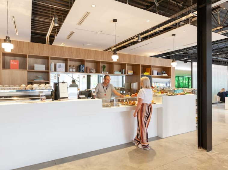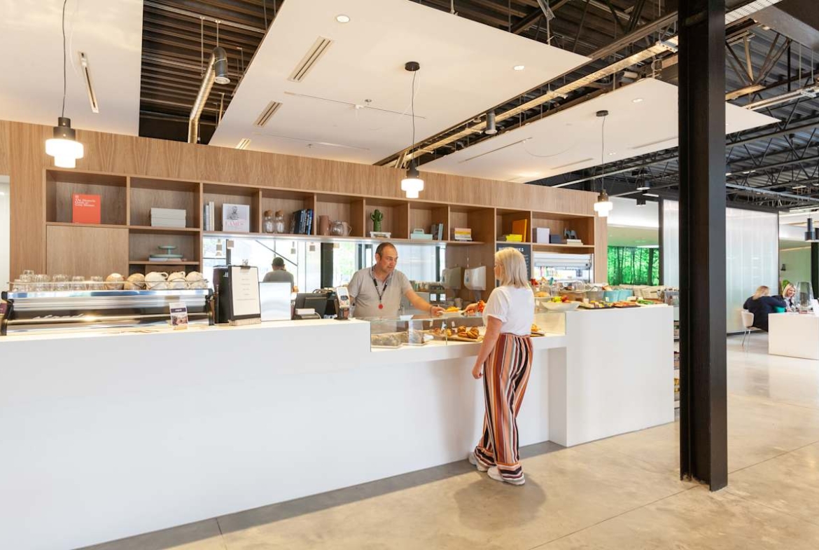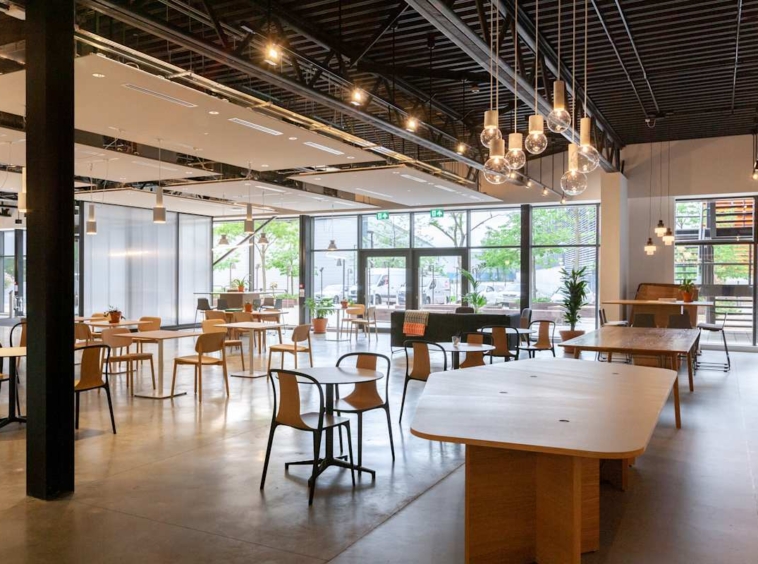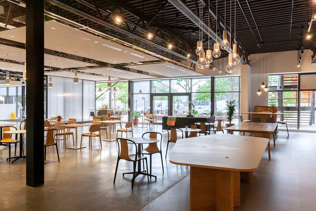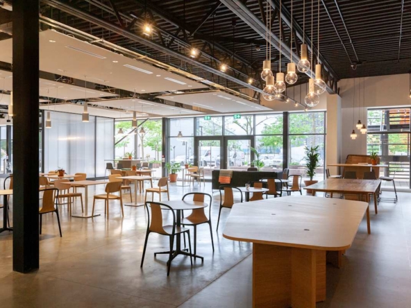The interior features a mix of private offices, conference rooms, and open lounge areas, allowing teams to choose the space that works best for them. High-speed Wi-Fi keeps you connected, while quiet nooks throughout the building provide ideal spots for focused work. Additionally, an on-site café serves barista-brewed coffee, perfect for quick breaks or informal meetings.