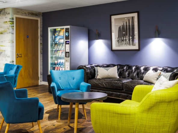 The building features high-speed internet, secure access, and on-site parking, making daily routines simple. A staffed reception greets visitors, while communal kitchens and breakout areas provide space for informal chats or a quick coffee. Regular socials help build a sense of community among occupiers.